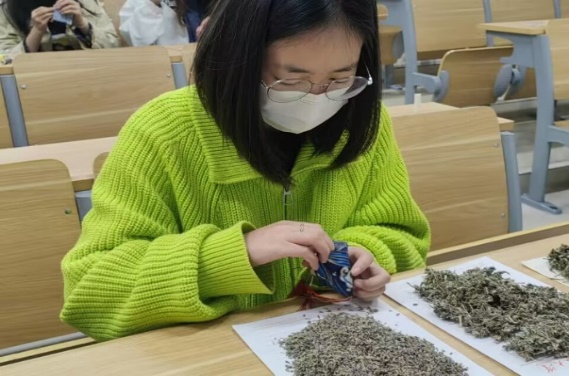 重阳亦有佩戴茱萸的习俗,10月23日晚,义工站带领同学们一起制作香囊,寄托心中的思念、祈求生活的美好。针线穿过布片的缝隙,彩绳系住缝制的布袋,将香草装满囊袋,用各色的流苏作为点缀。一个个精巧的香囊在同学们的双手中渐渐成型,动手制作的快乐和成就感也一点点涌上心头。这一个小小的香囊包含了同学们无限的心意,亦引得活动的现场一片馥郁的芳香。