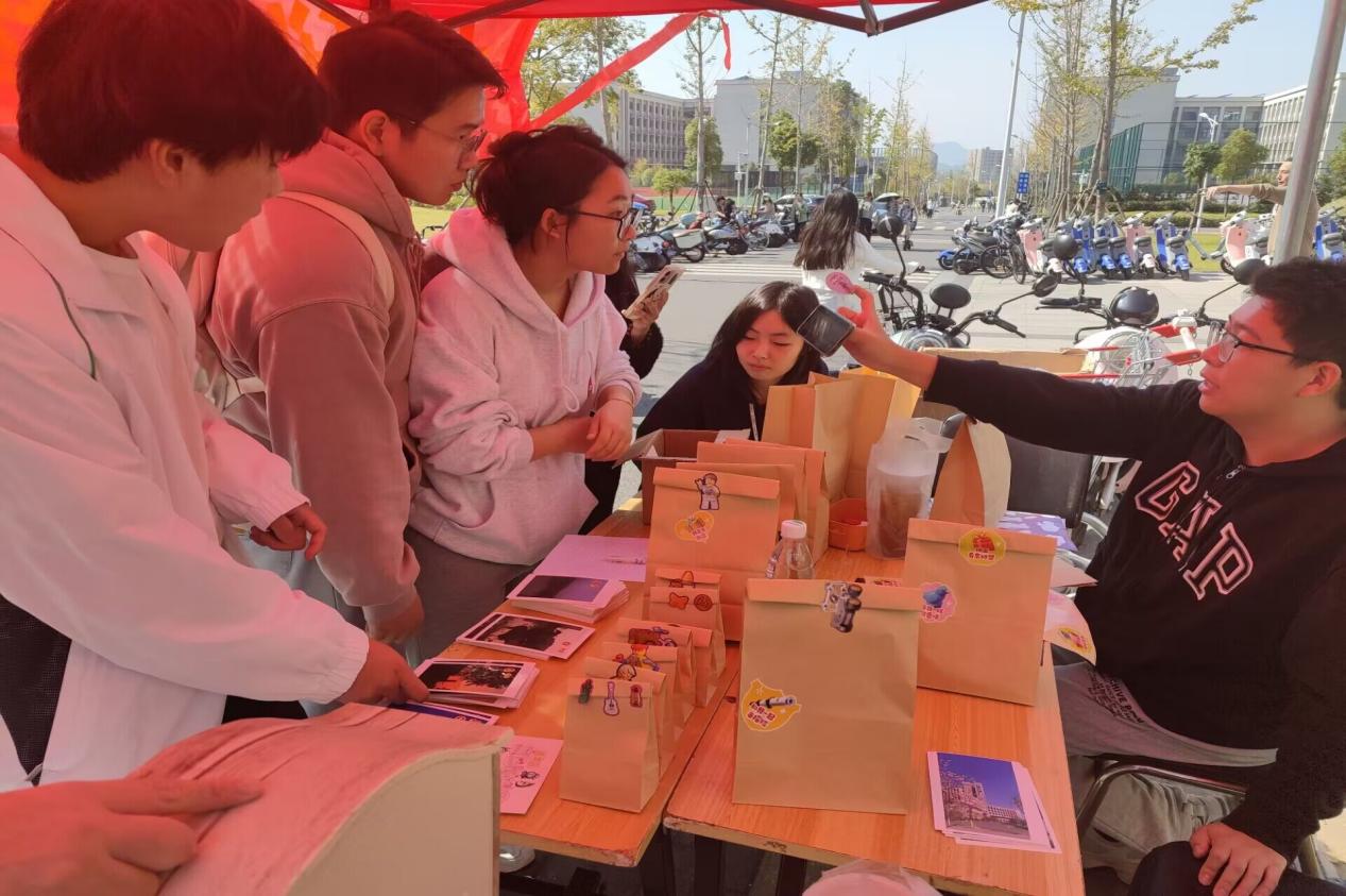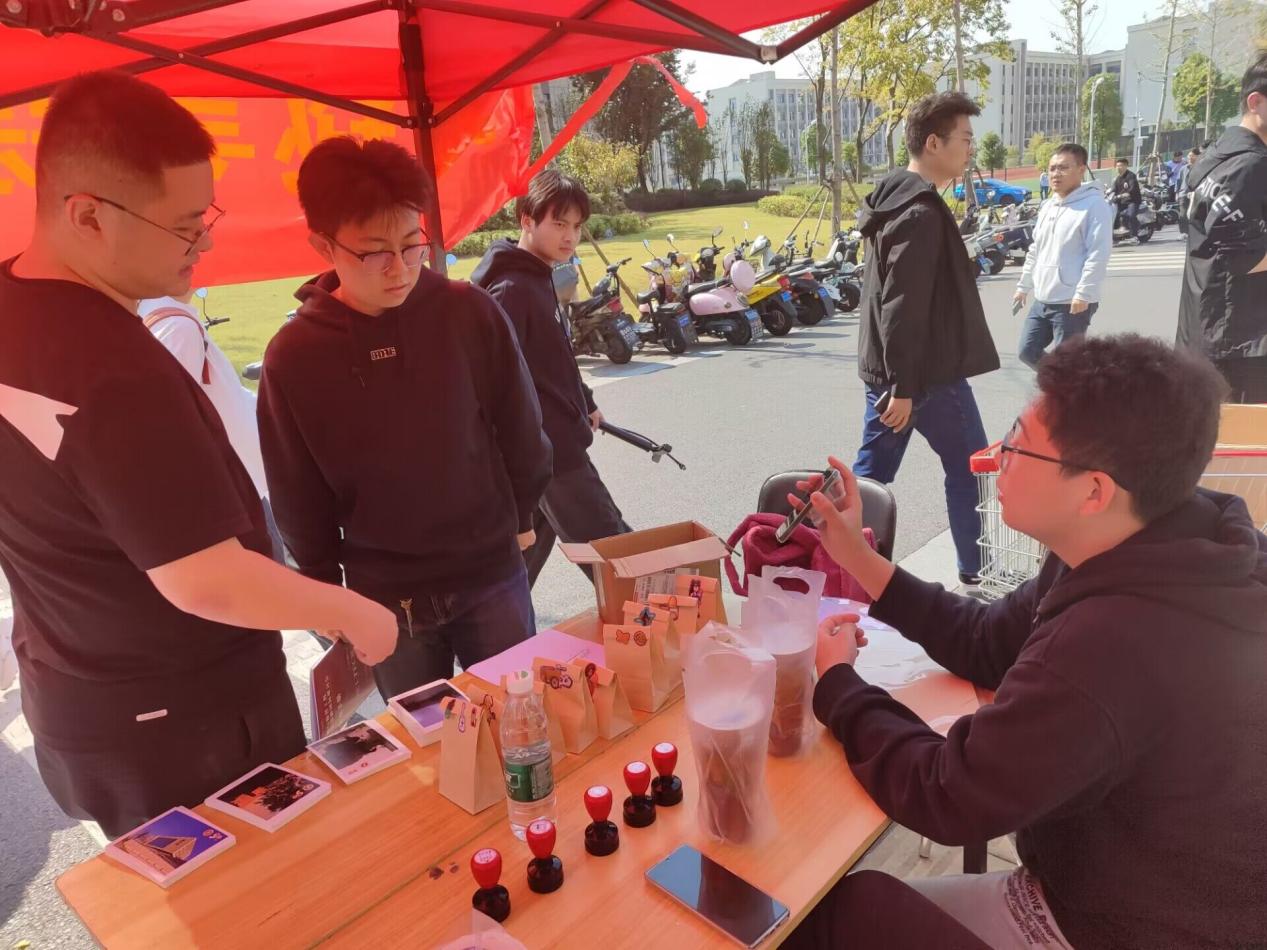 10月23日上午,活动在长山校区东苑食堂门前拉开了序幕。待工作人员讲解了活动规则后,同学们纷纷前往打卡拍照文理大楼、校训碑等五个江科大地标性建筑。打卡完毕后,回到活动摊位处以打卡的地标数目盖章,根据盖章的数目领取活动奖品。