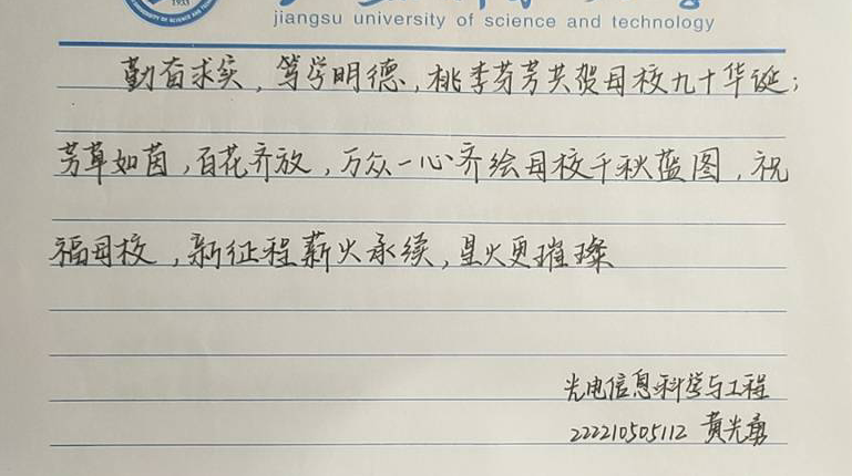 感恩母校,不负遇见。江科大的点点滴滴,给同学们带来了深刻的印象,留下了难以忘怀的回忆。10月21-22日,蒲公英义工站于东苑食堂处,组织同学们将一封封写给母校九十周年华诞的寄语和祝福投入信箱之中。信纸上写满的密密麻麻的文字,寄托着同学们对母校九十年来辛苦耕耘的感激,同时,也寄托了同学们逐梦江科大、传承“船魂”精神的美好期望。
