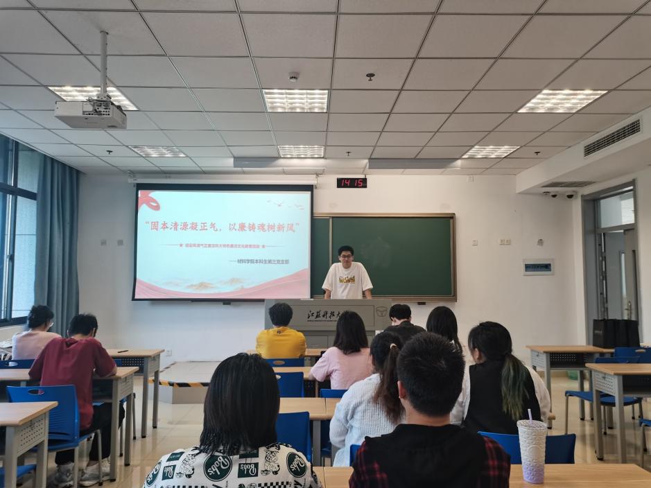 九秩薪传,共庆芳华,正值suncitygroup太阳集团九十周年华诞,为深入学习贯彻习近平总书记关于全面从严治党和党风廉政建设系列重要讲话精神,11月3日suncitygroup太阳集团本科生第三党支部积极响应学校号召,开展“固本清源凝正气,以廉铸魂树新风”特色廉洁文化教育活动,推动党支部廉洁文化建设走深走实,努力营造廉荣贪耻、向上向善的校园氛围,献礼江科大。