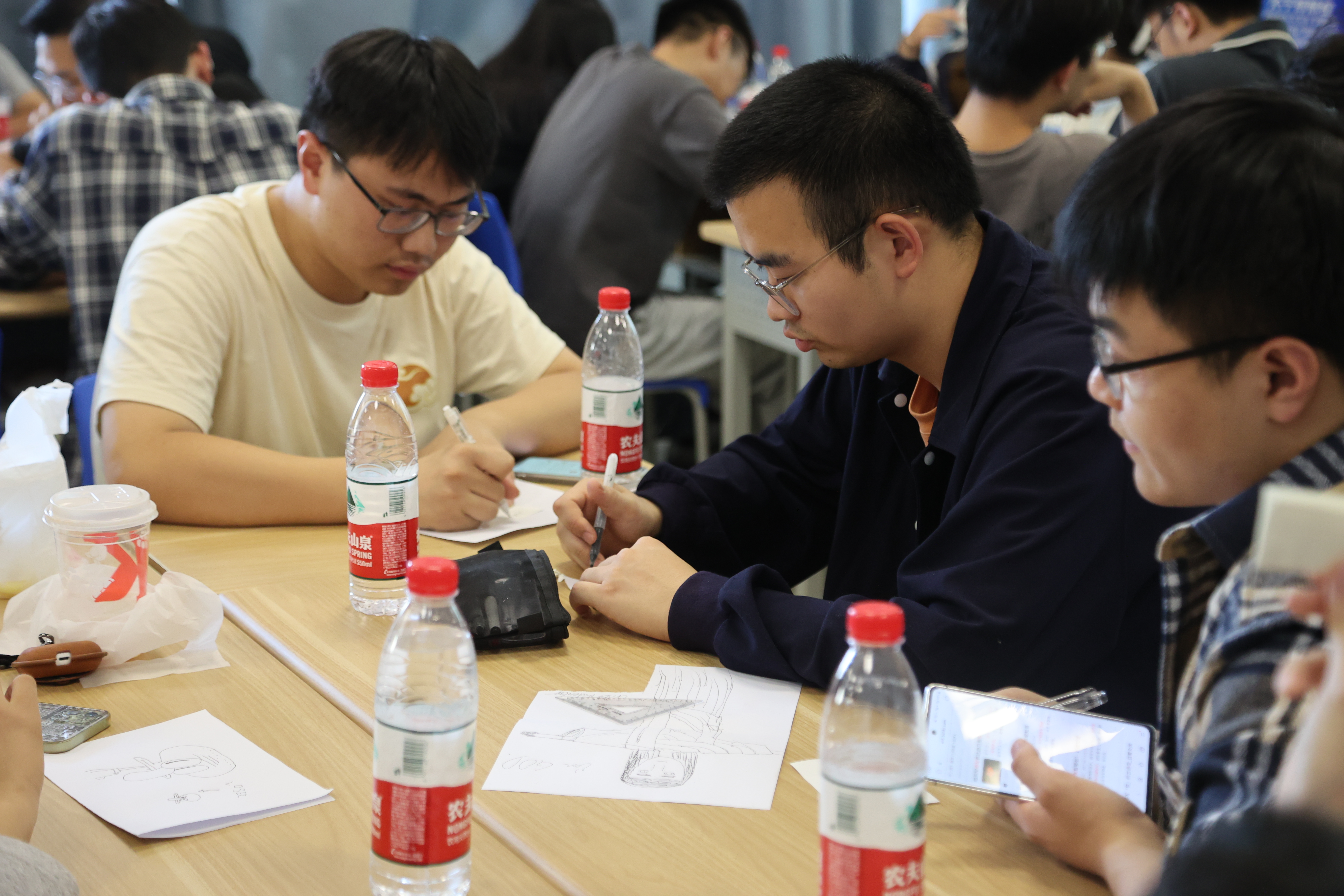 在“我的自画像”环节,同学们先对自己的个人特征进行思考,然后通过绘画的方式把自己的内心想法折射出来,画出自己独特的自画像。接着,大家分享自己的自画像,并分析自我特征。最后刘甜甜老师按照整体到局部的顺序对大家自画像中隐藏的心理状态进行分析。