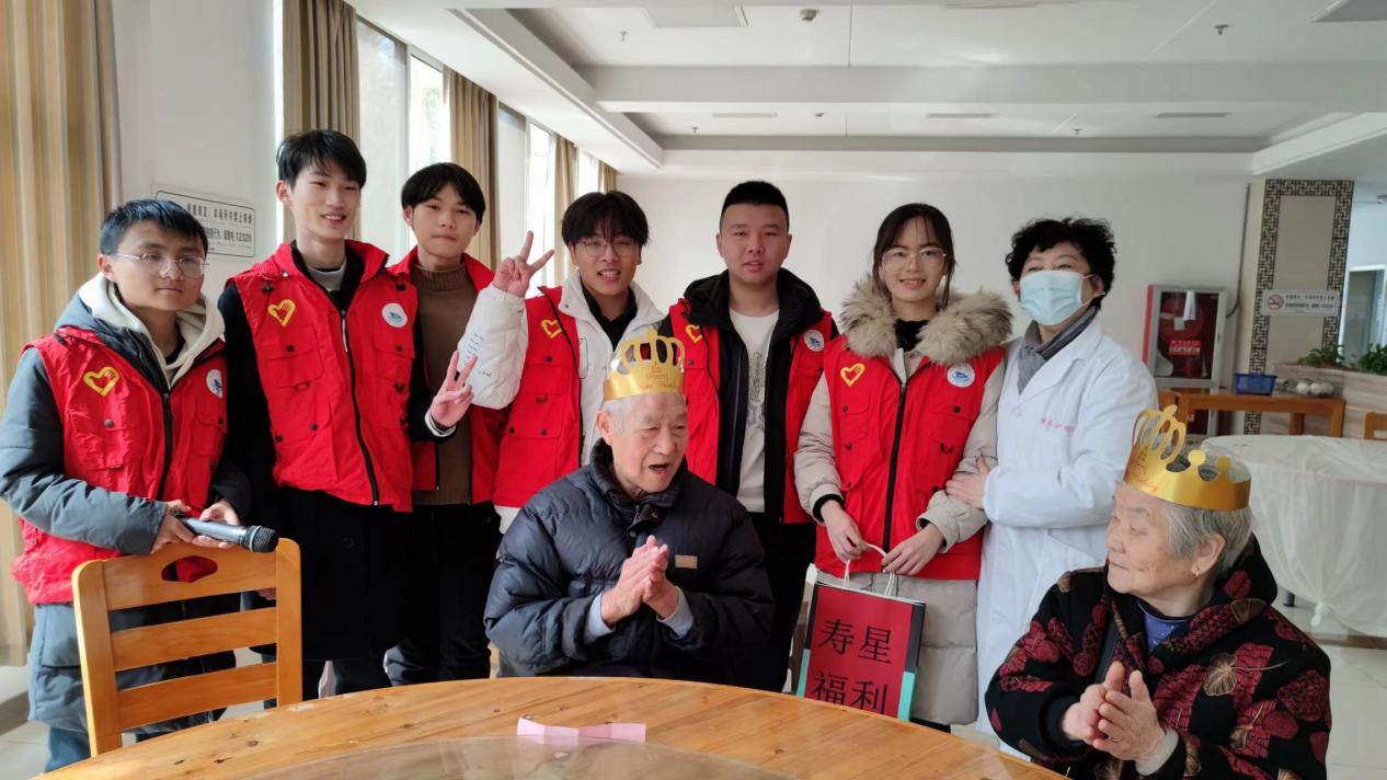3月1日上午,志愿者们走进镇江市德高护理院,共同为护理院的老人们过生日并送上暖心的生日祝福。志愿者邀请寿星们围坐成一圈,进行“击鼓传花”游戏。最先进行抽签的是朱奶奶,她抽到的是“志愿者给寿星表演歌曲”,在大家期待的目光中,两位志愿者挑选了一首老歌,熟悉的旋律引得其他人也跟着哼唱起来,歌声把现场气氛带向另一个高潮。紧接着,志愿者还给寿星们表演魔术、揉揉肩、捶捶腿,给他们一个拥抱,与他们一起拍一张合照......每个人都乐在其中。游戏结束后,志愿者又为寿星们端上长寿面、一起切生日蛋糕。