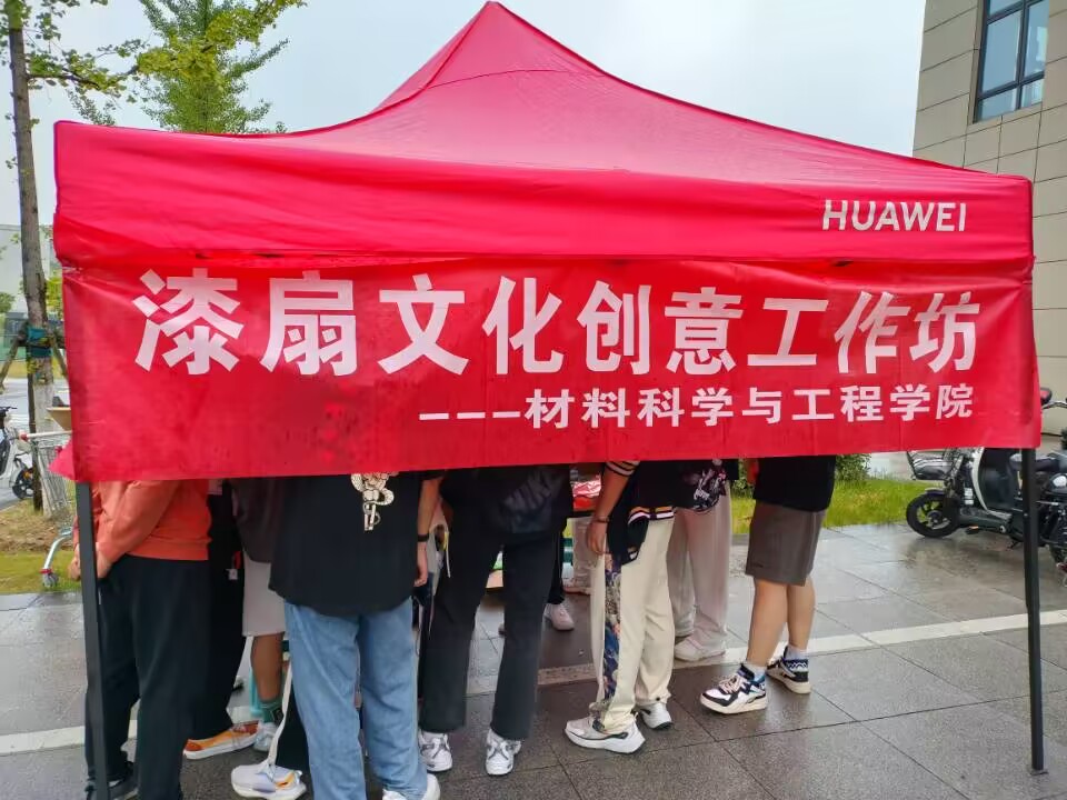 为了弘扬中华优秀传统文化,丰富同学们的校园文化生活,5月11日,suncitygroup太阳集团在长山校区东苑食堂南门口举办了以“漆扇文化创意工作坊”为主题的手工创作活动。