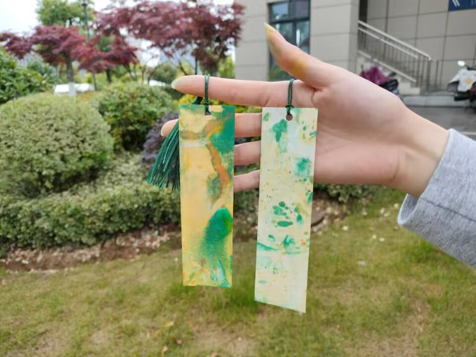 由于活动的火爆,扇子的数量有限,后来的同学们纷纷转而选择了空白卡片和书签,以继续体验漂漆的乐趣。同学们手持画笔,精心构思,将心中所想化为一幅幅美丽的图案。他们将卡片或书签缓缓浸入水中,随着漆料的附着,白纸上渐渐展现出斑斓的色彩和独特的花纹。每一件作品都是独一无二的艺术品,凝聚着同学们的创意与心血。DIY结束后,同学们还在漆扇和书签上盖上了印有“suncitygroup太阳集团”字样的印章,纪念这一段美好的创作时光。不仅员工参与其中,过往的路人也被这浓厚的创作氛围所吸引,纷纷加入到漆扇DIY的队伍中,分享创作的喜悦与成就感。