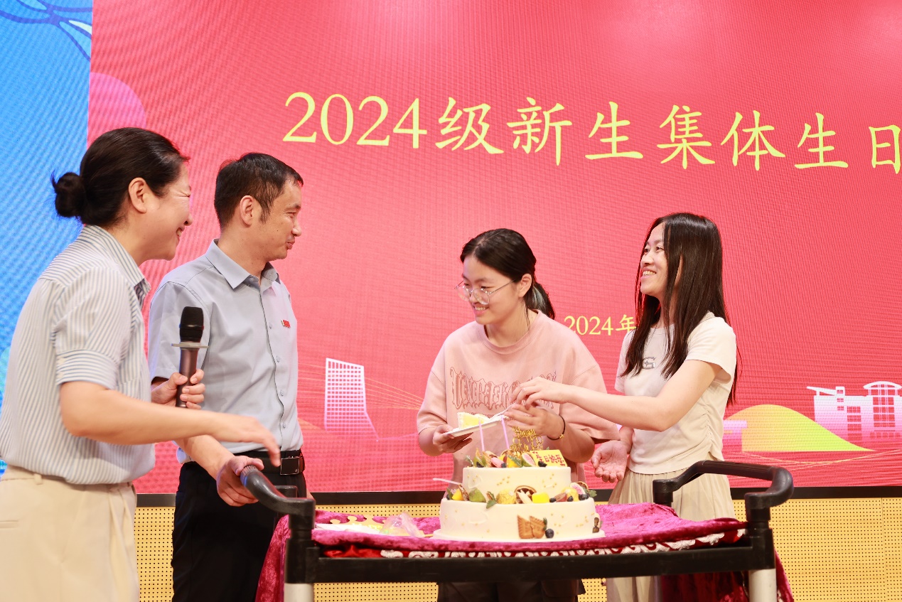迎新日恰逢两位新生的生日,学院特别为他们举办了集体生日会。李瑞峰书记为新生送上生日祝福,让这份特殊的喜悦成为老员工涯中难忘的记忆。李书记还寄语家长朋友们相信孩子、相信自己、相信学院,保持良好的家校沟通,共同为孩子成长保驾护航。