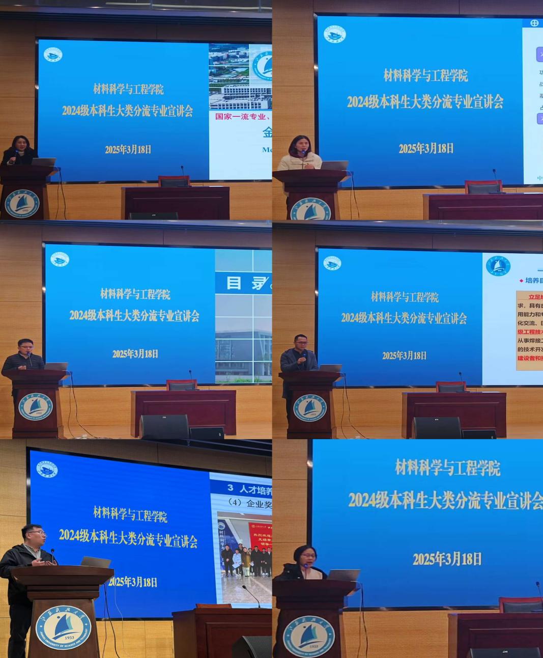 各专业负责人分别从专业概况、培养计划、课程设置、科研成果、就业方向等方面,对焊接技术与工程、金属材料工程、高分子材料与工程、功能材料、材料成型及控制工程、电子封装技术等6个专业进行了全面介绍。生动的案例、详实的数据、前沿的科研成果,为同学们勾勒出各专业的发展蓝图,也引发了大家对未来专业选择的深入思考。