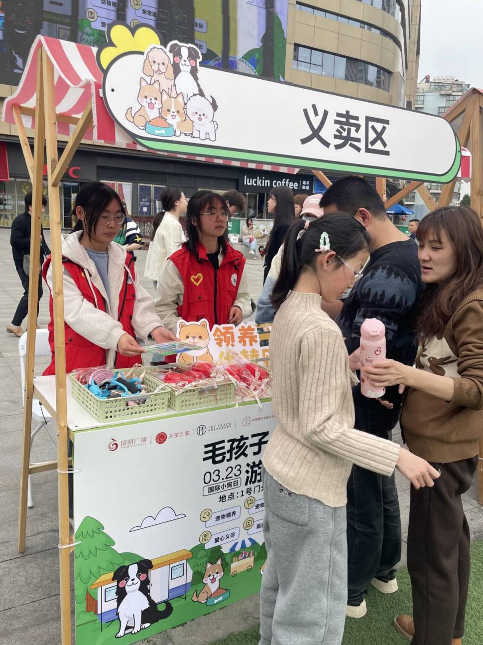 活动当日,志愿者们被分为四组,分别在义卖和领养处忙碌。活动伊始,志愿者们协助主持人开展了毛孩子竞速比赛,引得众多路人驻足观看,比赛不仅为大家带来了欢乐,也让更多人意识到仍有很多流浪动物需要救助。