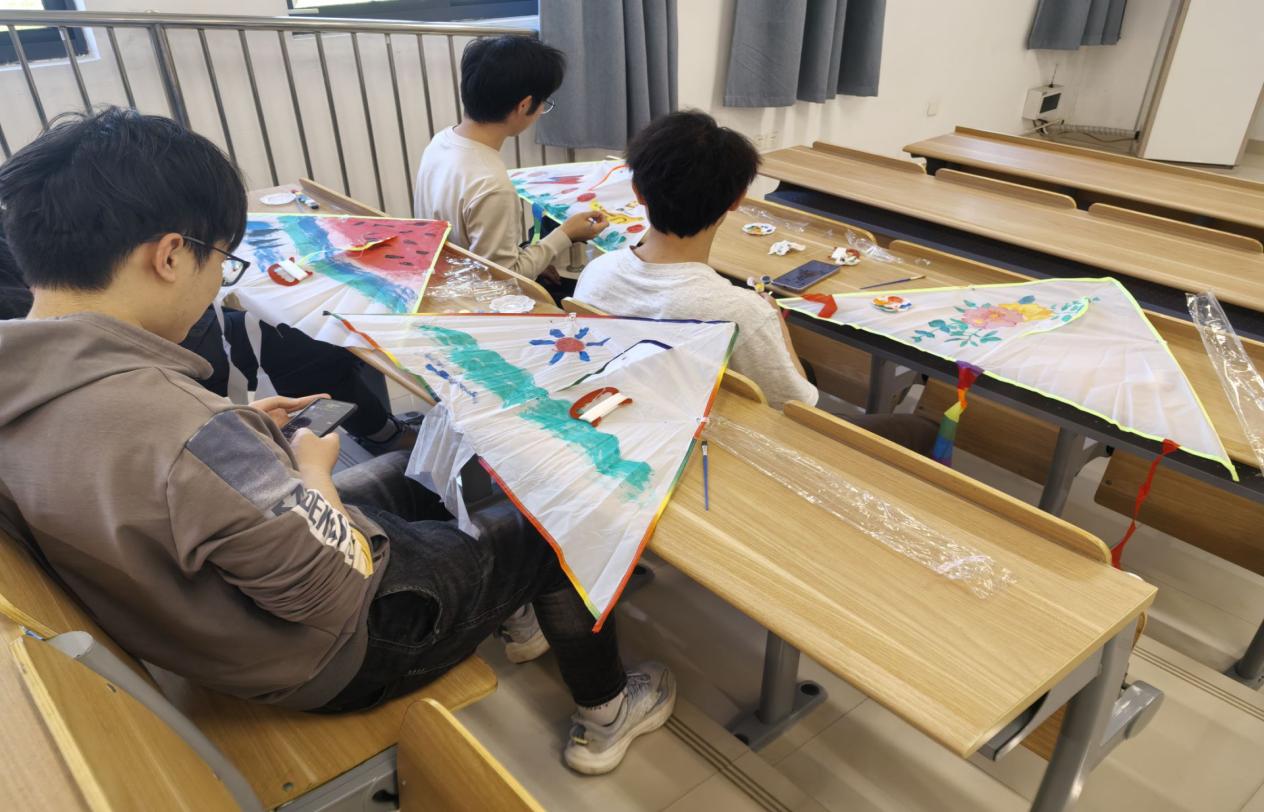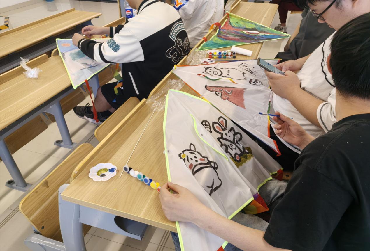 参与的同学们热情高涨,纷纷发挥奇思妙想,在风筝上精心绘制自己喜欢的图案。有的同学用细腻的笔触描绘出绚丽的花朵和翱翔的飞鸟,寓意春天的蓬勃生机与活力;有的同学书写励志诗句,将对未来的美好憧憬寄托于风筝之上;还有的同学将现代卡通形象与传统元素结合,展现出独特的艺术风格。制作过程中,大家相互交流创作灵感,欢声笑语不断,现场气氛温馨而热烈。