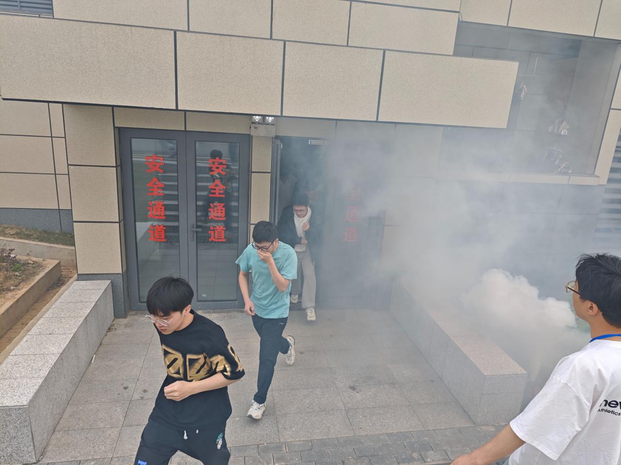 随着消防警报声响起,演练进入实战环节。点火组按预案在公寓楼内施放环保烟雾模拟火情,公寓值班人员立即启动应急响应:立即报警、切断电源、停运电梯、开启应急通道。各楼层员工在疏散引导员的指挥下,捂住口鼻,弯腰低姿,按疏散路线有序撤离至户外集结点。与此同时,灭火组使用灭火器迅速扑灭“火源”,完整演练了火灾应急处置全流程。