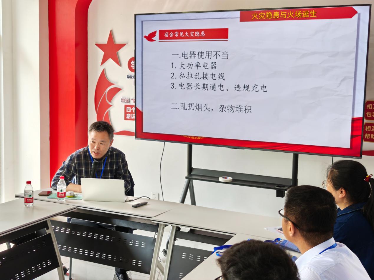 在“护航”一站式员工社区,校应急管理科刘律科长为辅导员、员工干部、公寓管理人员开展宿舍消防安全培训。通过理论讲解、案例剖析等方式,重点讲解了起火原因,预防措施以及逃生技能。