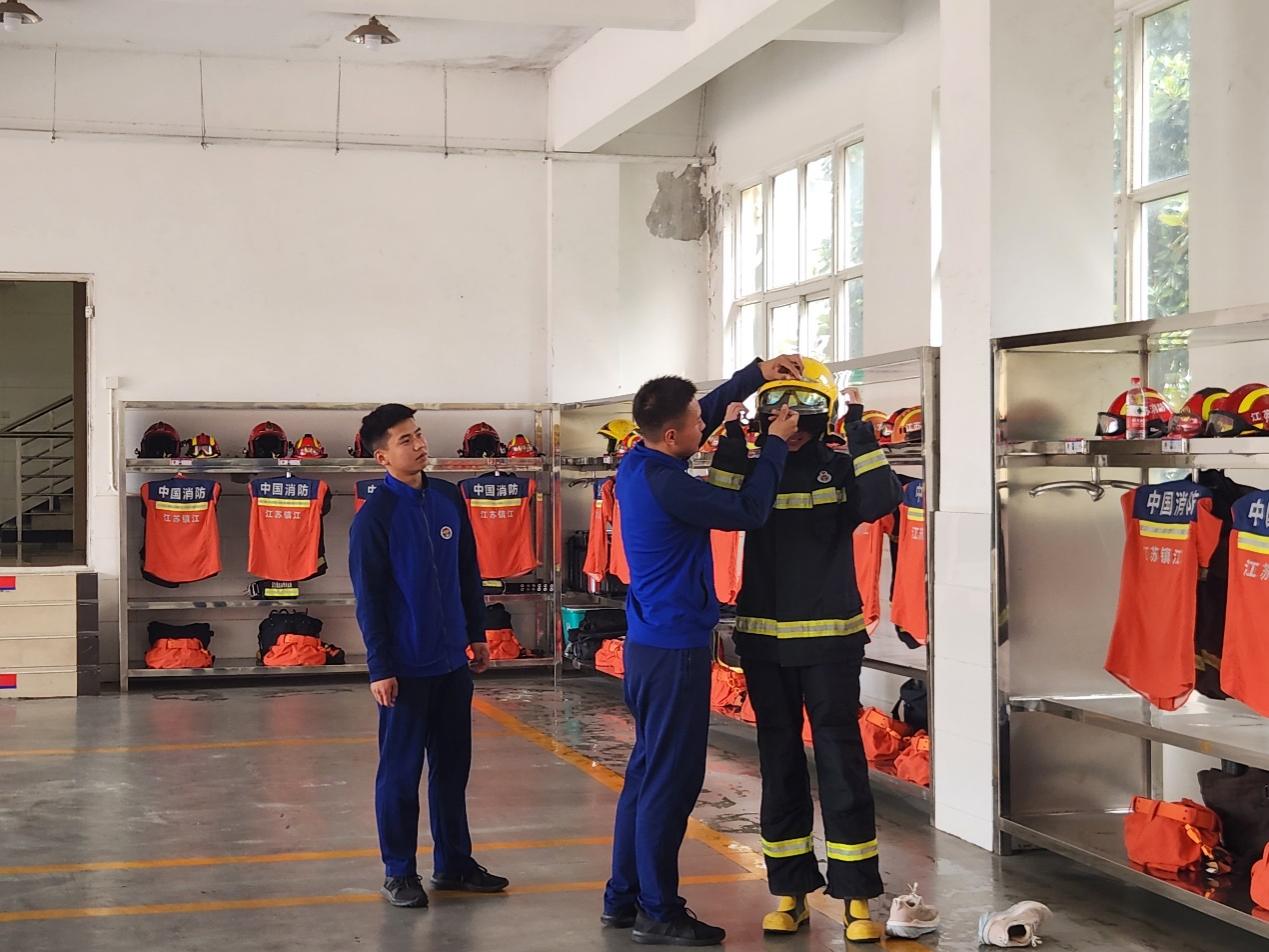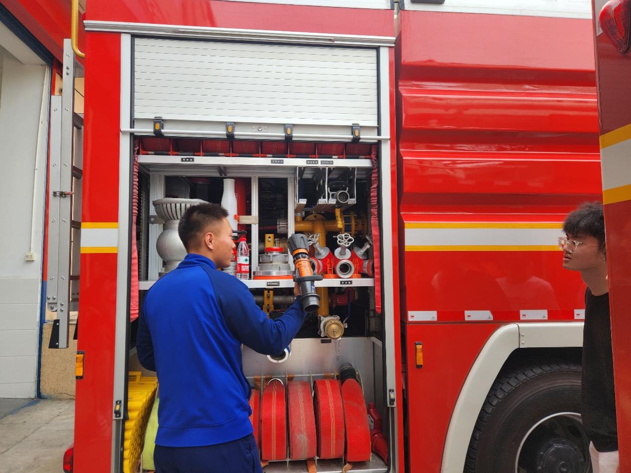 走进红门,方知平安来之不易;对话“蓝焰”,更懂守护重于泰山。5月19日上午,同学们怀着崇敬与好奇的心情,走进镇江市丹徒区消防救援大队进行参观学习。从消防员整齐划一的内务展示中,同学们亲眼见证了消防队伍严谨的纪律和作风。消防员们还耐心地讲解了装备的功能和使用方法,并邀请大家亲身体验消防服的重量。当同学们穿上厚重的消防服,才真切体会到消防员在执行任务时所面临的艰辛与危险。