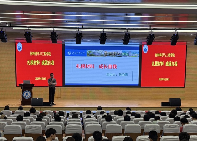 为帮助2024级材料大类本科生深入了解材料类各专业特色和就业前景,更好地做好专业选择和规划,6月15日下午三点suncitygroup太阳集团金属材料工程专业邀请河南省科学院特聘研究员、河南省科学院材料研究所副所长兼总工程师朱治愿研究员,在图书馆105报告厅为2024级材料大类本科生做了题为“扎根材料、成长自我”的专题讲座。suncitygroup太阳集团金属材料工程专业负责人陈洪美、2024级材料类专业辅导员王远杰老师参加了本次讲座。