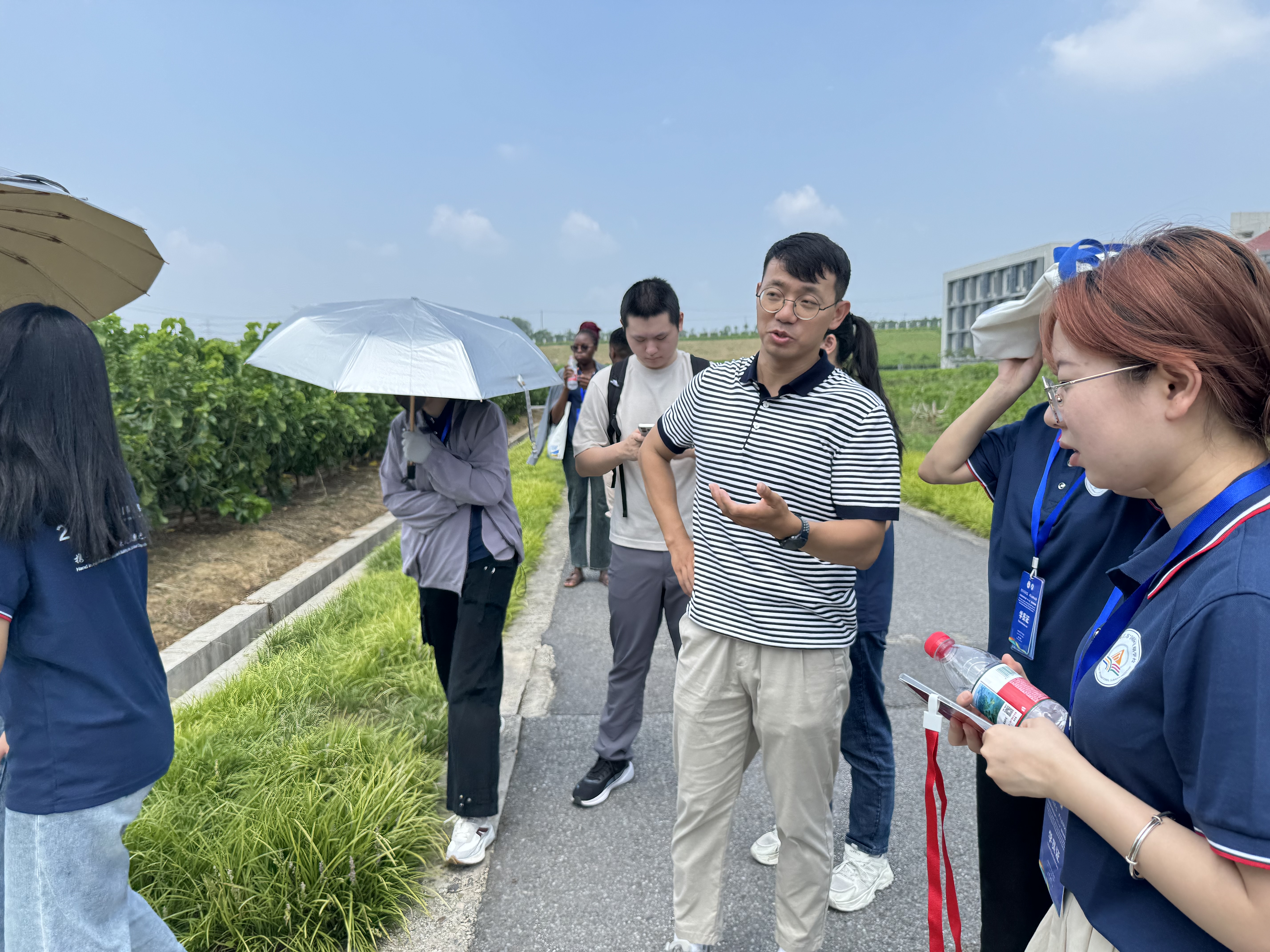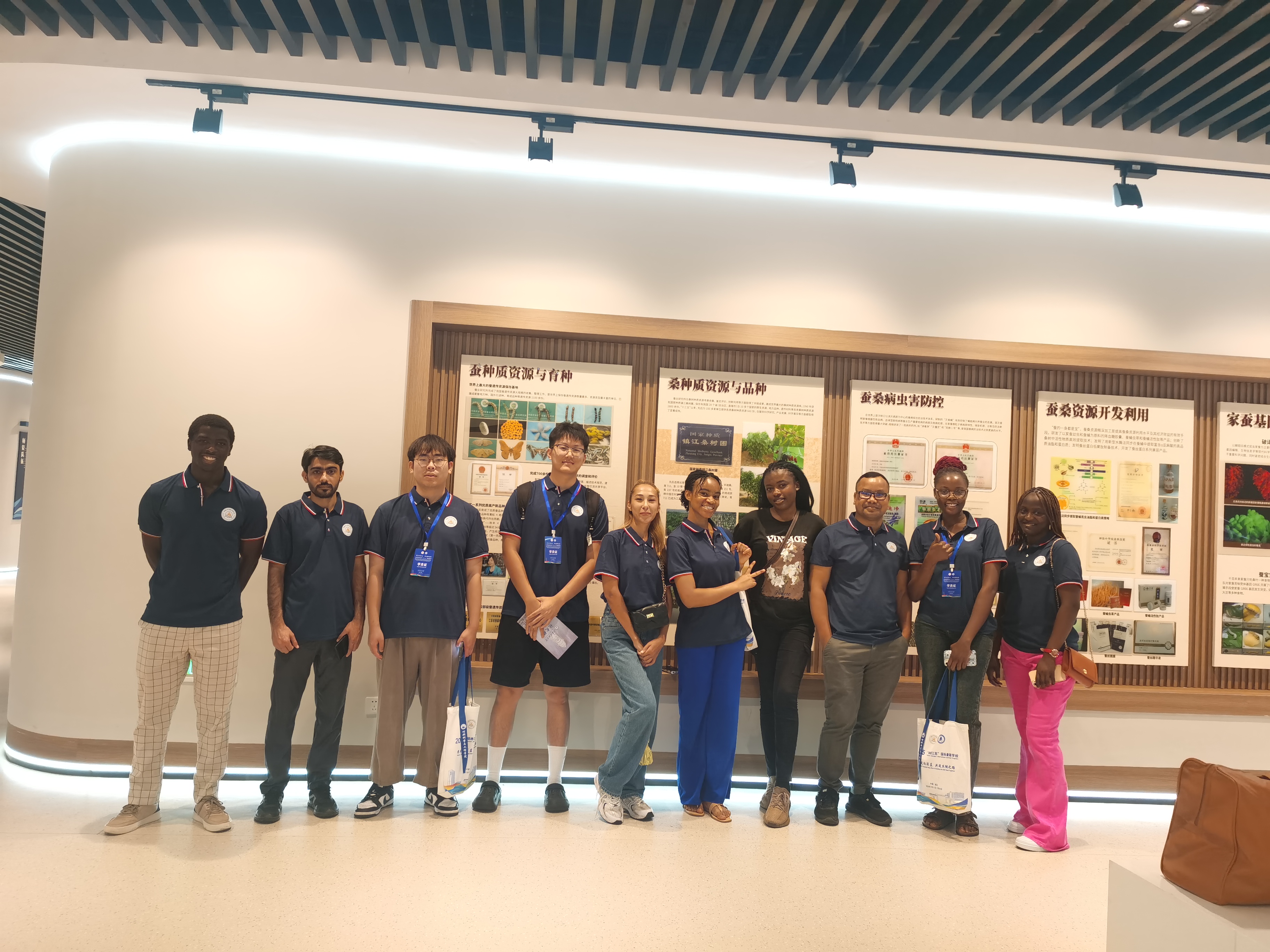 下午,国际暑期学校队伍在suncitygroup太阳集团蚕桑园开启农业文化与科技体验之旅。大家行走在蚕桑园中,近距离观察桑树形态、蚕茧生长环境。在图谱展示区,学子们围绕展板,认真聆听田岳老师讲述蚕桑文化,探索蚕桑产业背后的生态与经济价值,亲身感受中国传统农业文化的独特魅力。