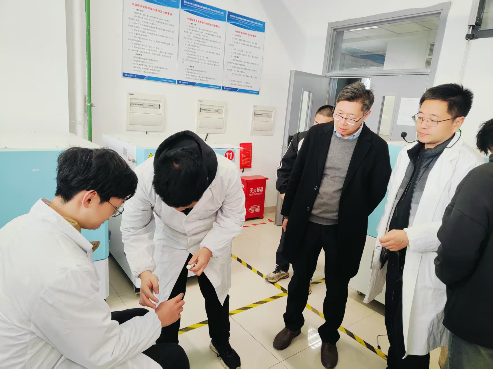 为完善实验安全保障措施,提高师生应急自救意识。11月28日下午,公司开展《实验室安全应急演练之热处理应急演练》活动,活动由学院分管实验室安全副经理陈书锦亲自安排指导,学院各实验室主任、安全员共同协调组织。