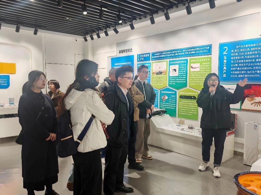 签约仪式后,教工党支部党员代表赴丹阳市科技成果展示与交流中心进行实地考察。通过系统了解高分子材料创新应用、高端装备智能制造等领域的产学研合作成果,高校公司相关教师与地方企业代表就技术转化、人才需求等议题展开深入交流,为后续校企协同创新明确了发展方向与合作路径。