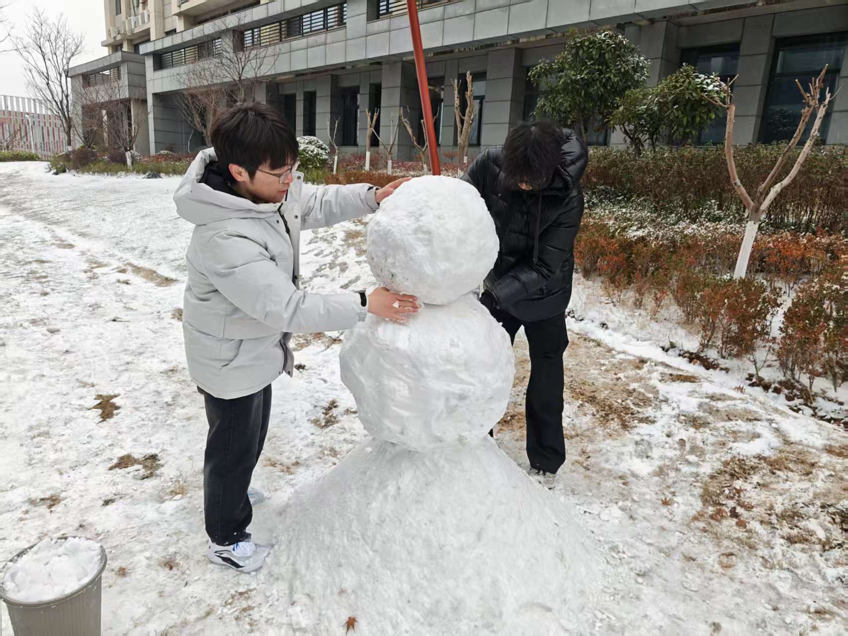 1月20日,镇江降下2026年首场瑞雪,市区积雪深度达2至3厘米,suncitygroup太阳集团校园内银装素裹,别有韵味。无需组织号召,同学们自发走出实验室、宿舍,在校园开阔区域开展堆雪人、赏雪景等活动,创意雪人搭配各式趣味装饰,欢声笑语弥漫校园,为科研之余的校园生活增添了轻松氛围。