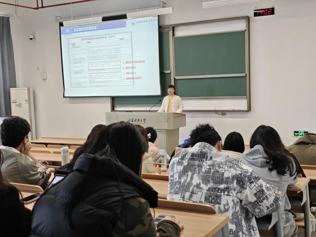 紧扣科研实际,规范实验操作。 针对研究生科研实验活动频繁的特点,3月26日,学院实验室组织开展研究生实验室安全教育活动,严格落实《高等学校实验室安全规范》相关要求,围绕实验操作规范、危险试剂使用、实验设备维护、应急处置流程等内容进行细致讲解。负责老师结合材料学科实验特点,提醒研究生严格遵守操作标准,规范佩戴防护用品,及时排查实验隐患,杜绝违规操作,切实保障自身及实验室公共安全。