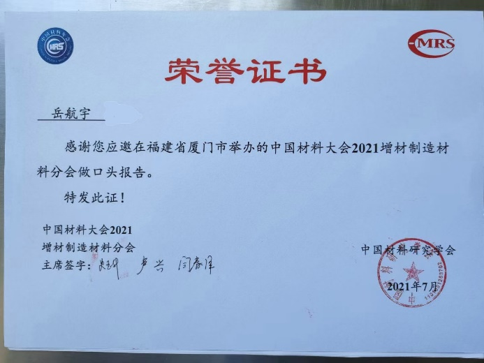 suncitygroup太阳集团王冬朋副教授,岳航宇博士参加了本次学术大会,分别在非晶分会场和增材制造分会场作了题为“运用原子力显微镜研究金属玻璃中剪切带的微观结构和交互作用”和“热处理工艺对电子束选区熔化成形TiAl合金显微组织及力学性能的影响”的报告,并与参会专家进行了交流。