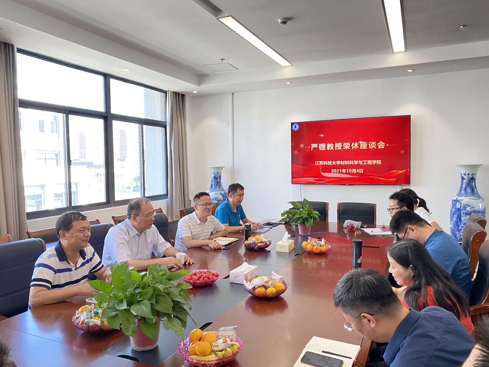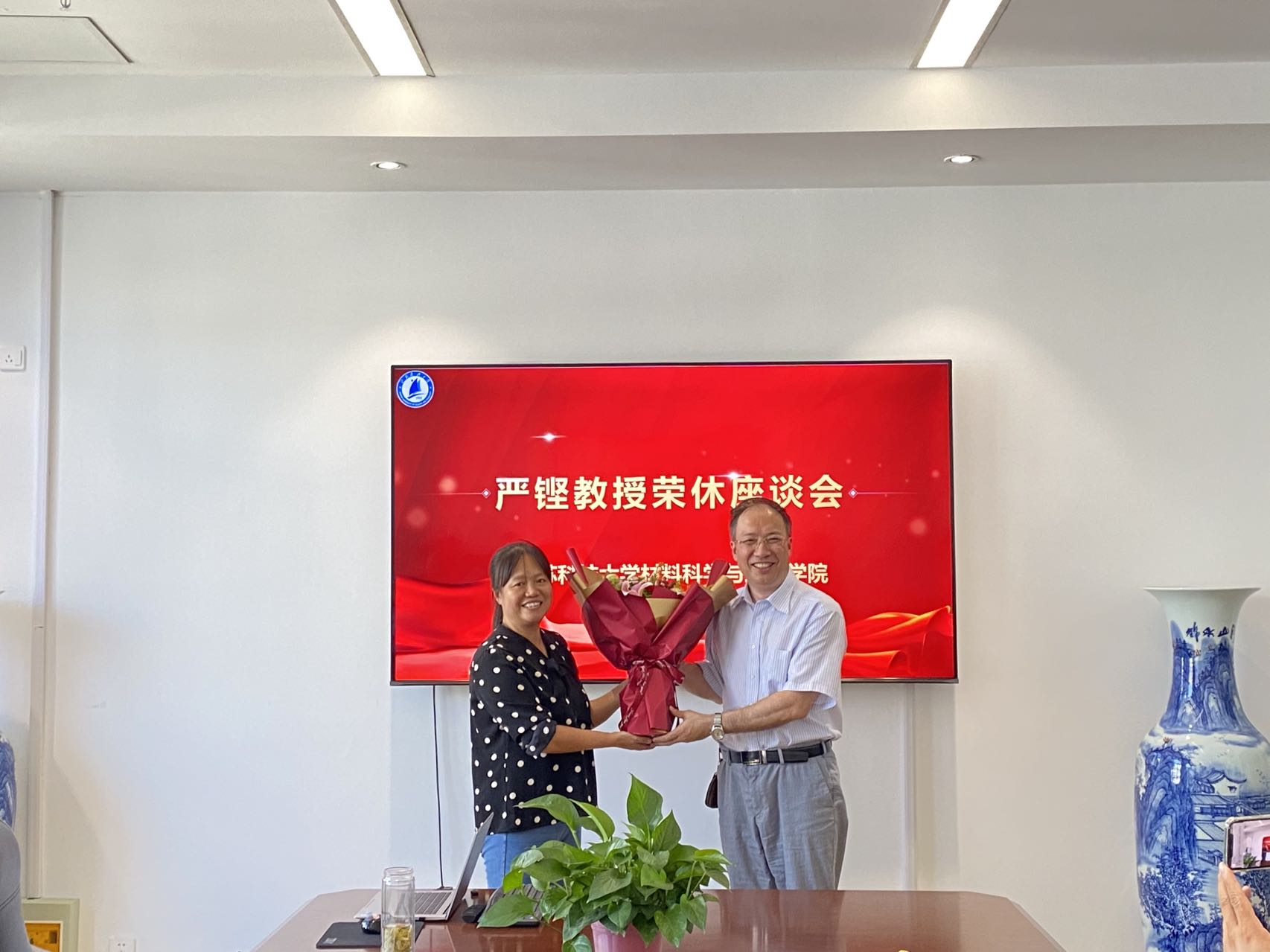 岁月染芳华桃李育芬10月4日上午,材料学院召开欢送严铿教授光荣退休座谈会,学院领导班子以及10余位教师代表参加座谈会议由党委书记晏超主持。